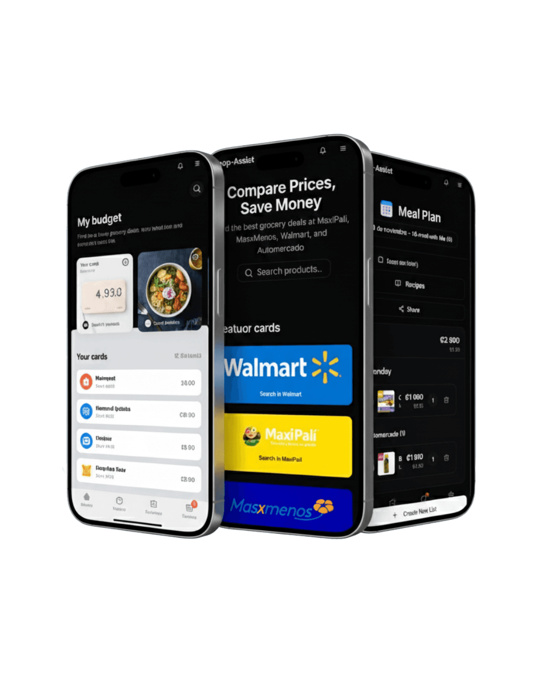 Get organized, compare real-time prices at MaxiPali, Walmart, and Automercado, and plan your meals—all in one place. Guaranteed to cut your weekly bill.